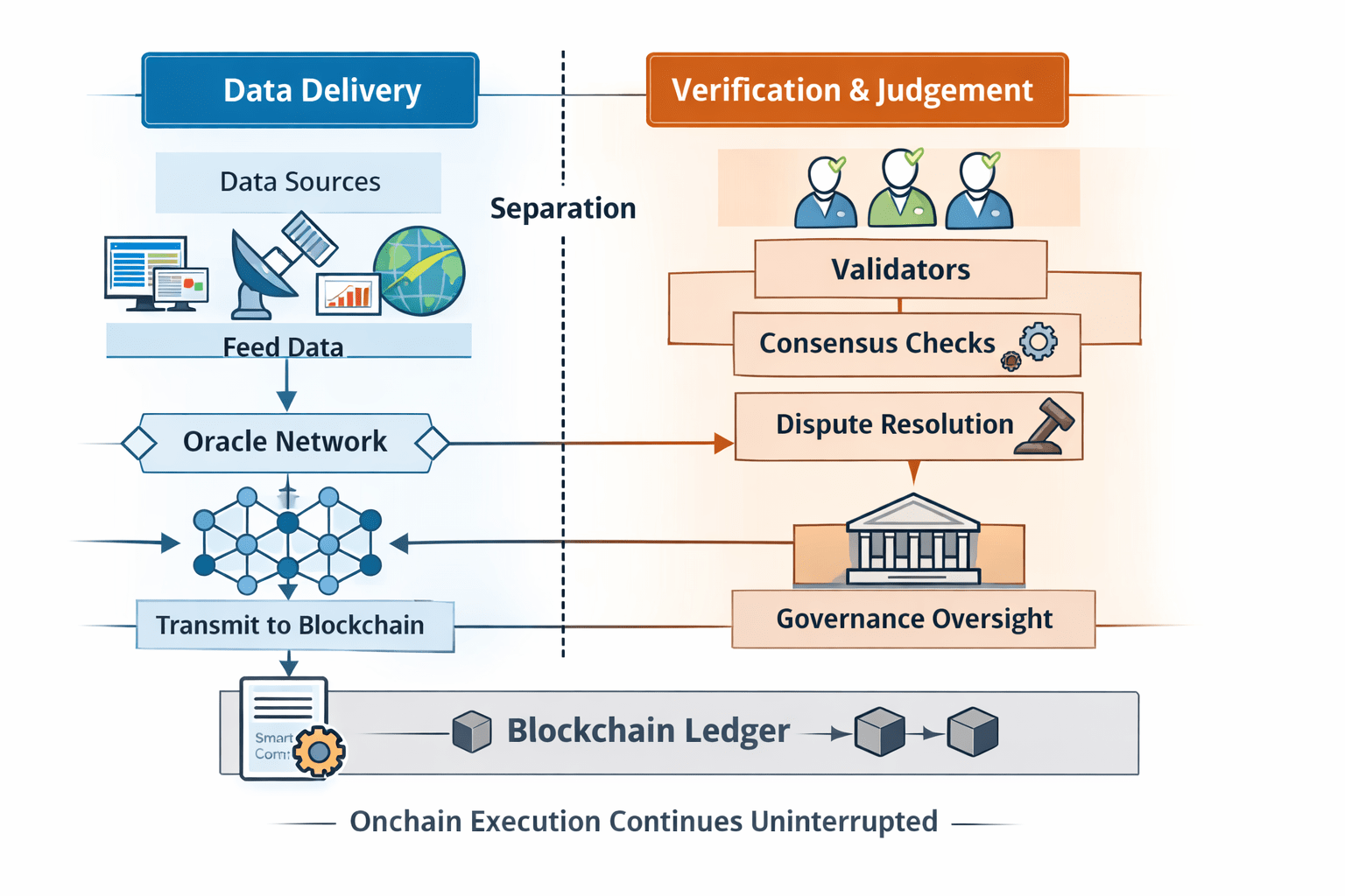 I sistemi Oracle di solito si interrompono in un momento tranquillo, non durante l'alta affluenza. I dati continuano a fluire, gli aggiornamenti continuano ad arrivare e i contratti intelligenti continuano a leggere i valori. La debolezza appare più tardi, quando il sistema deve decidere se un output debba essere considerato affidabile o contestato. APRO è costruito attorno a quella separazione. Tratta la consegna dei dati e il giudizio sui dati come due responsabilità diverse invece di fonderle in un unico flusso.