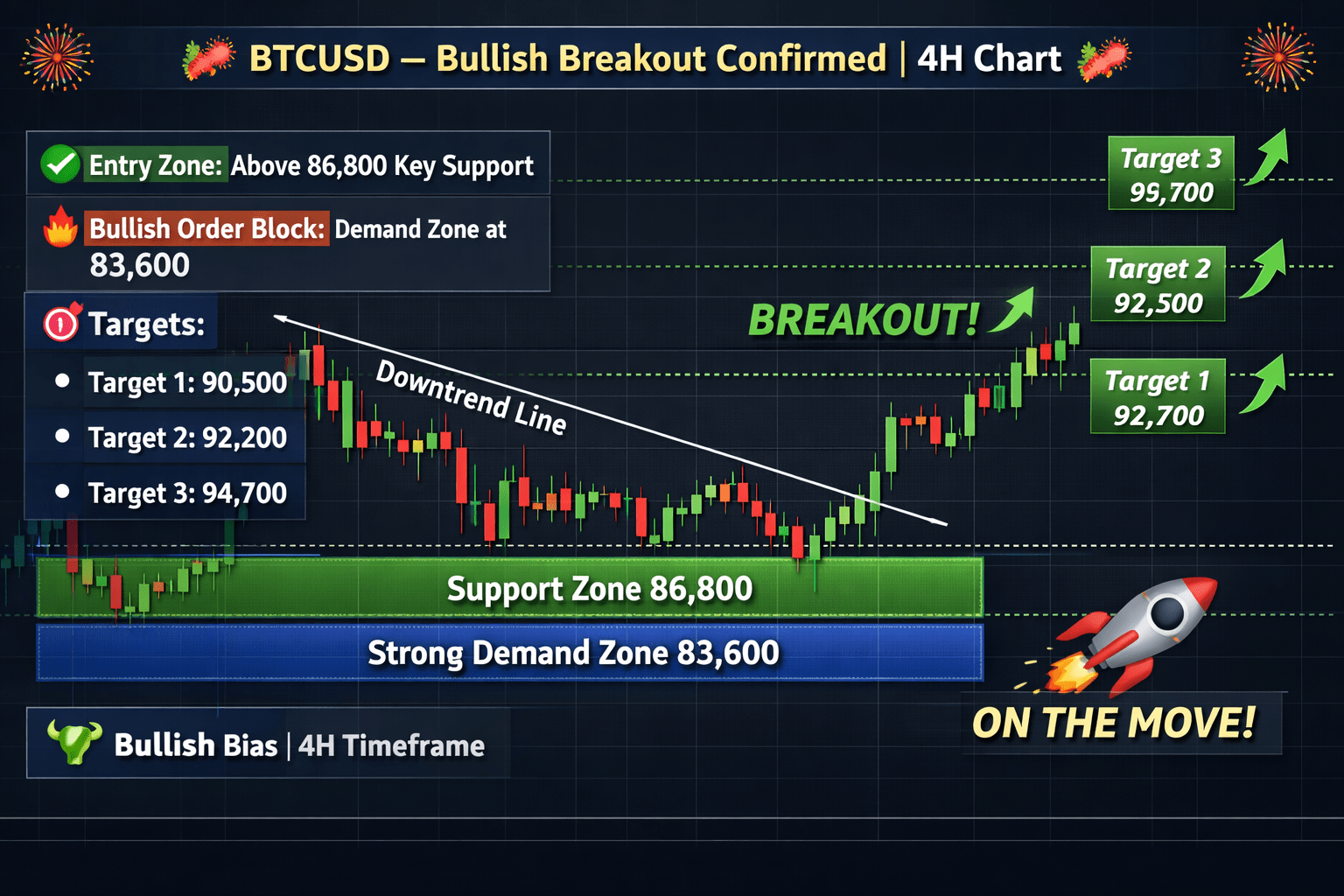 La struttura rialzista rimane intatta fintanto che BTC rimane sopra la zona chiave di supporto. La gestione del rischio è fondamentale — la struttura ha sempre la priorità.