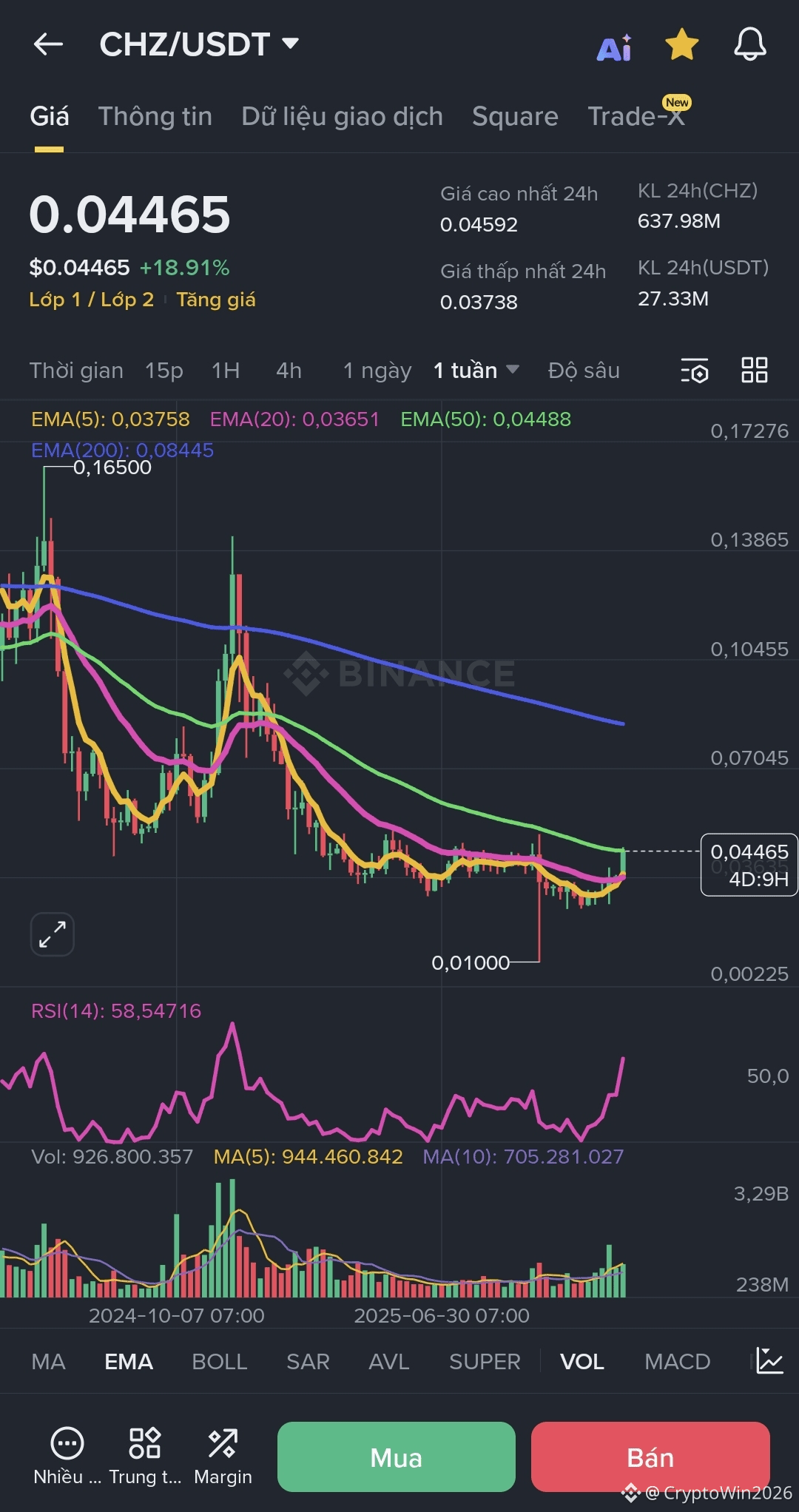 Nhưng nếu bearish, dip về $0.035. Không phải financial advice, DYOR và quản lý rủi ro nhé! Bạn nghĩ $CHZ sẽ pump tiếp không?