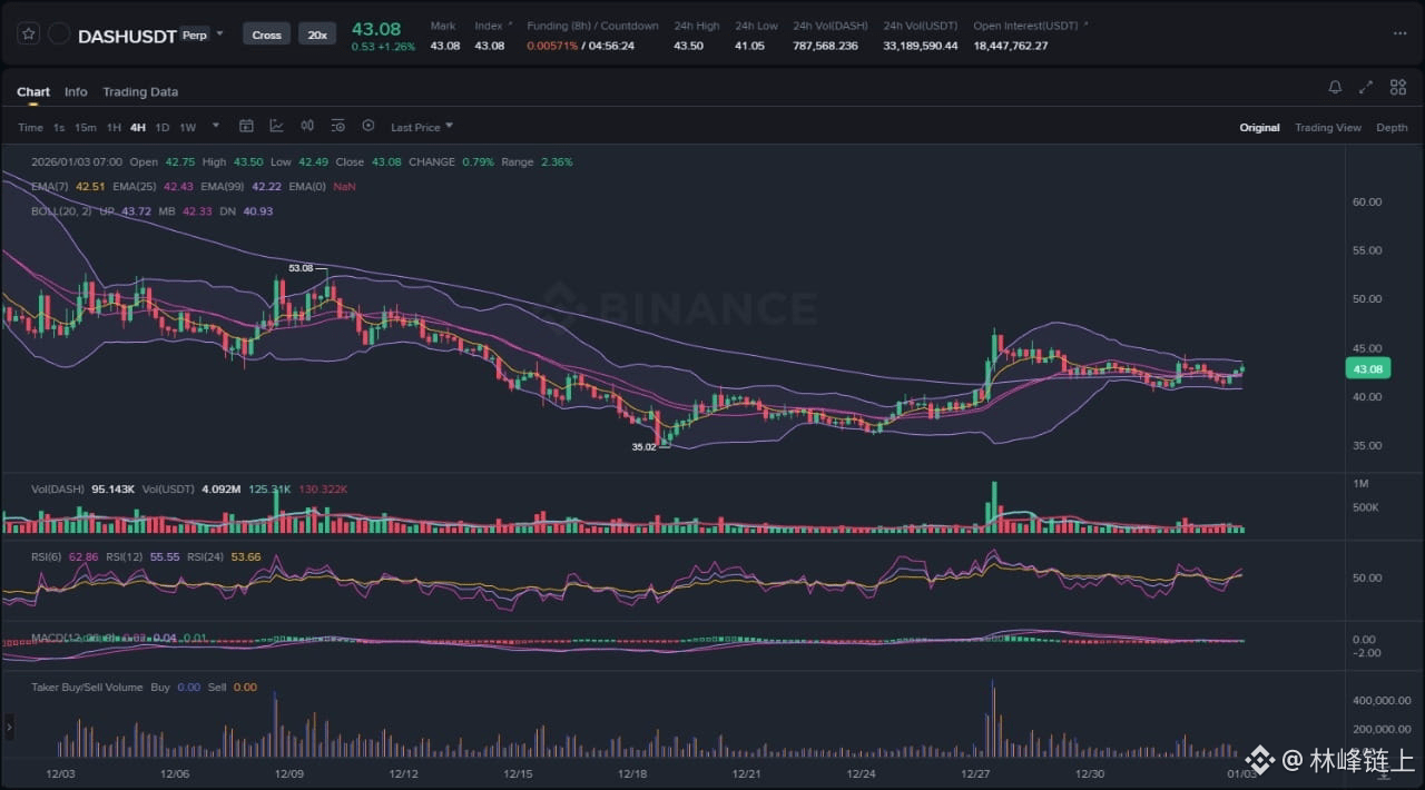 The technical landscape for Dash on the four-hour timeframe reveals a distinct shift in market character. For much of early to mid-December, the price action was dominated by a high-momentum bearish trend, characterized by lower highs and lower lows, culminating in the capitulation wick to 35.02 USDT. This level served as a pivotal liquidity grab, where aggressive selling was met with substantial limit buying orders, marking a temporary floor in the market.