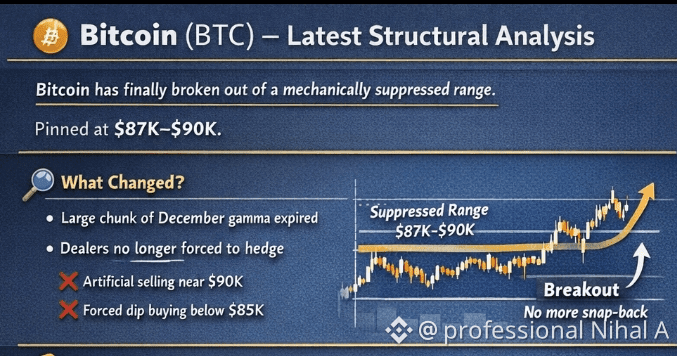 $BTC è finalmente uscito da un intervallo meccanicamente compresso che ha dominato gran parte di dicembre.