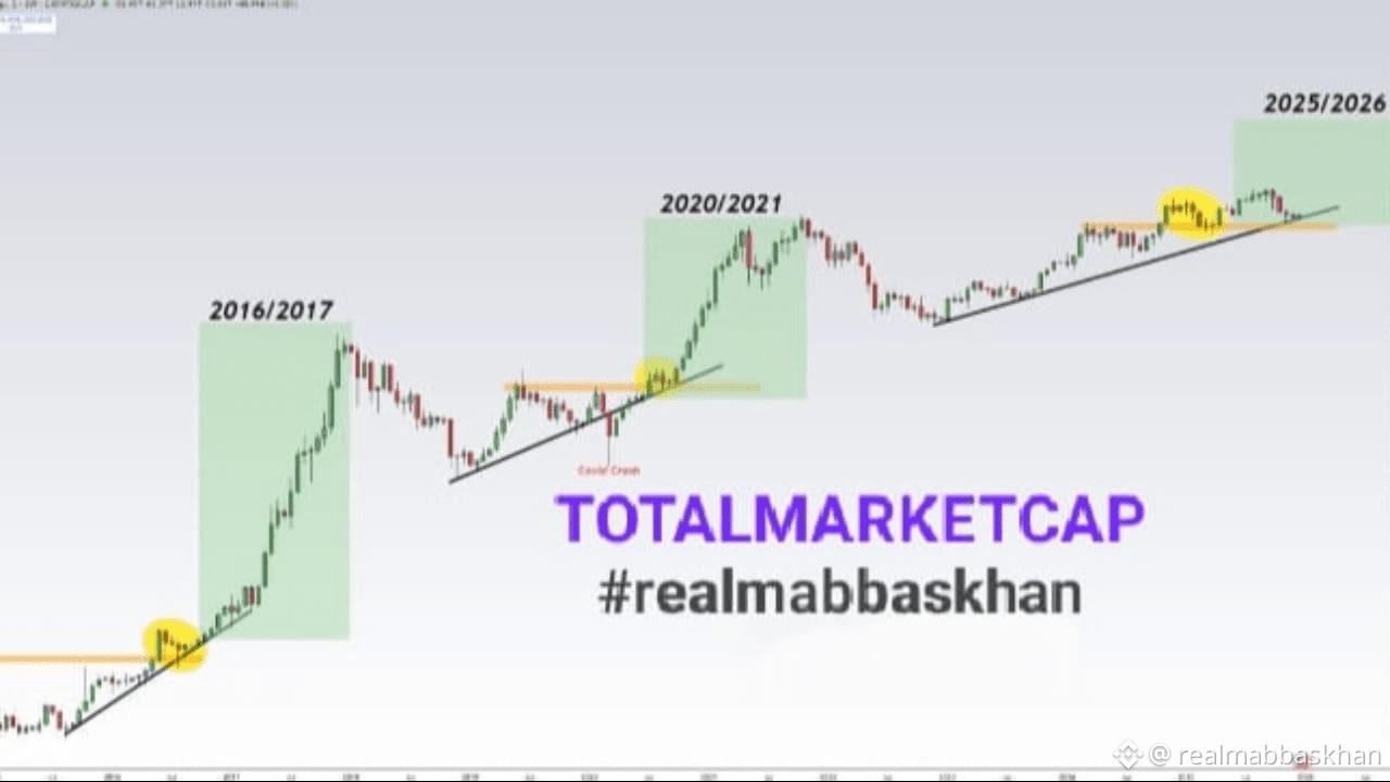 🔥Cap totale seduto su una linea di tendenza di 3 anni (Altcoin pronte per il rally del 2026)🚨🚨 Il ritmo ciclico del mercato crypto è difficile da ignorare. I principali rally rialzisti iniziano quasi sempre dopo lunghi periodi di consolidamento e tendenze al rialzo costanti.