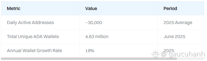 📌 Total unique ADA wallets reached ~4.83 million, with daily new wallets averaging ~1,700 in 2025 — a sign of consistent user acquisition and global reach.