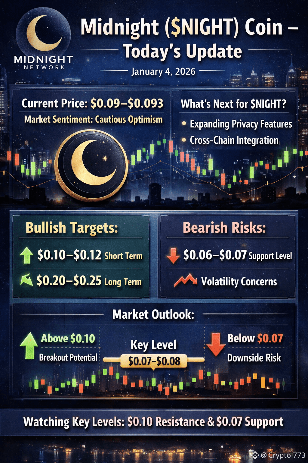 Midnight ($NIGHT), a privacy-focused blockchain project from the Cardano ecosystem, is gaining traction as traders watch for its next decisive move. Built to enable confidential smart contracts and privacy-preserving dApps, the project targets a growing demand for compliant on-chain privacy.