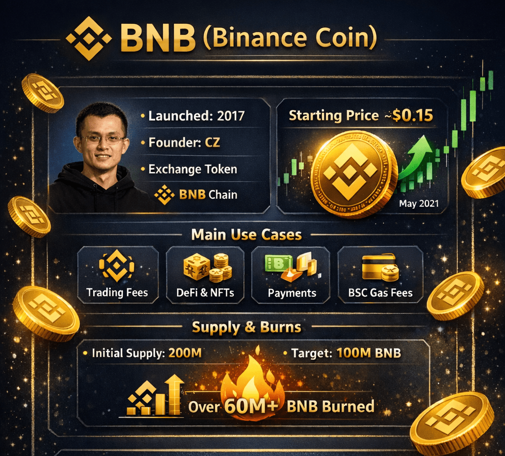 $BNB è la criptovaluta nativa di Binance, il più grande scambio di criptovalute al mondo. È stata creata per alimentare l'ecosistema Binance ed è ora utilizzata in trading, pagamenti, DeFi, NFT e altro. BNB è iniziato come un token di utilità ma è cresciuto fino a diventare una moneta blockchain importante.