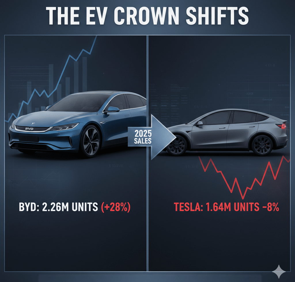 Il panorama globale dei veicoli elettrici (EV) ha raggiunto un punto di svolta storico questa settimana quando il gigante cinese BYD ha ufficialmente superato Tesla per diventare il principale produttore di EV al mondo per l'intero anno 2025.