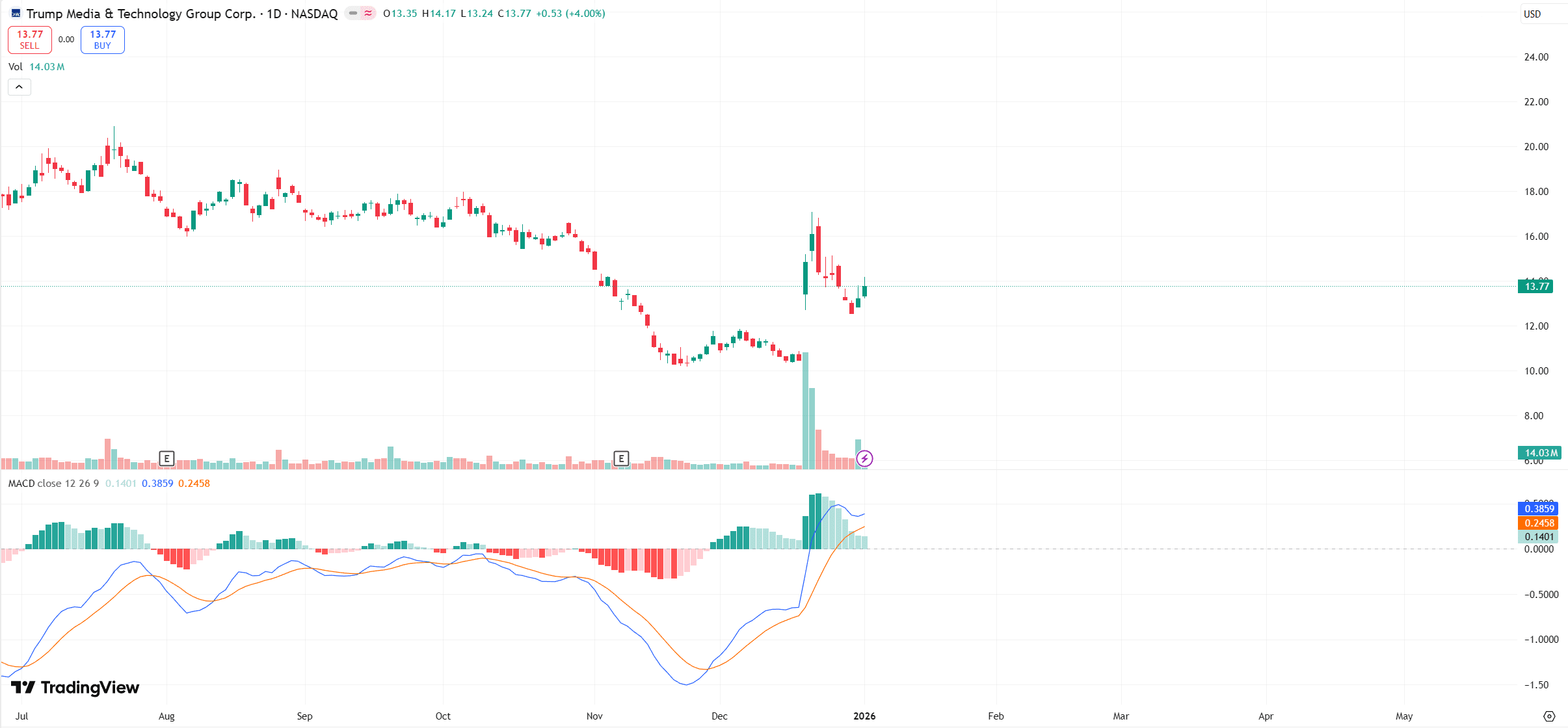 Secondo i dati di ultima ora, il 2 gennaio è stato il primo giorno di trading, con DJT quotato a 13,77$, in crescita del 4,00% rispetto al giorno precedente.
