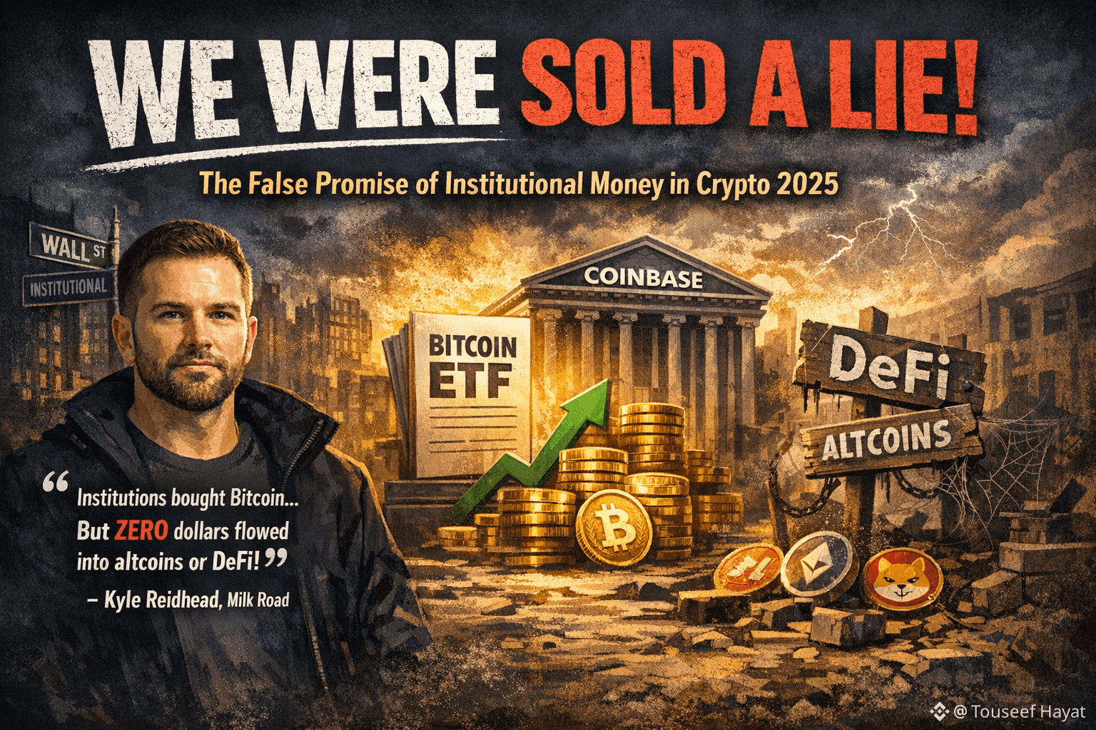 In 2025, the crypto world was sold a compelling narrative: institutional money is finally flowing into digital assets, bringing legitimacy, liquidity, and the long-awaited bull market. Big players were supposed to be entering the market — traditional finance (TradFi) institutions eagerly allocating capital into Bitcoin, altcoins, and DeFi. But if you step back and look at what actually happened, the story is very different.