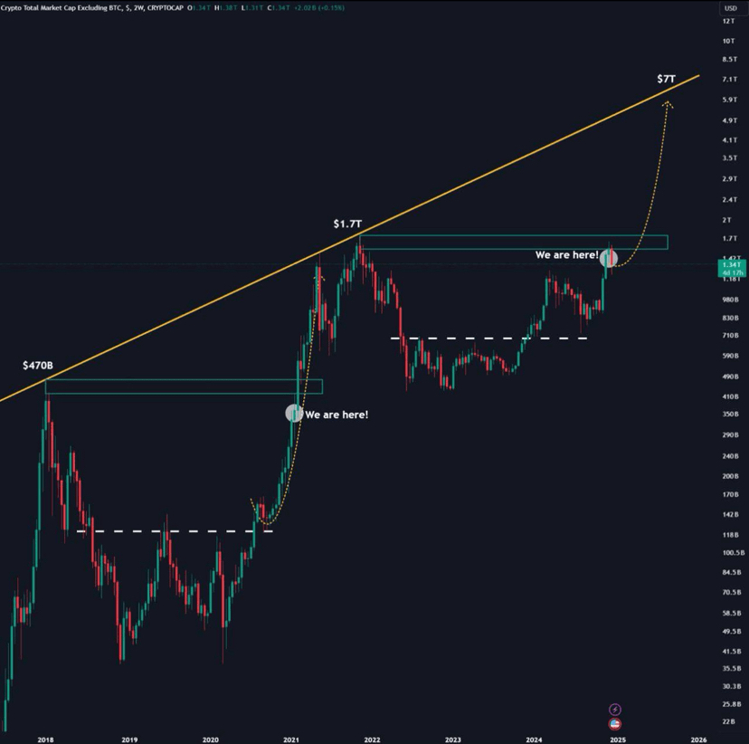 Quando Bitcoin ha già mostrato un movimento, gli investitori iniziano a cercare una rendita maggiore.Il capitale si sposta verso gli altcoin