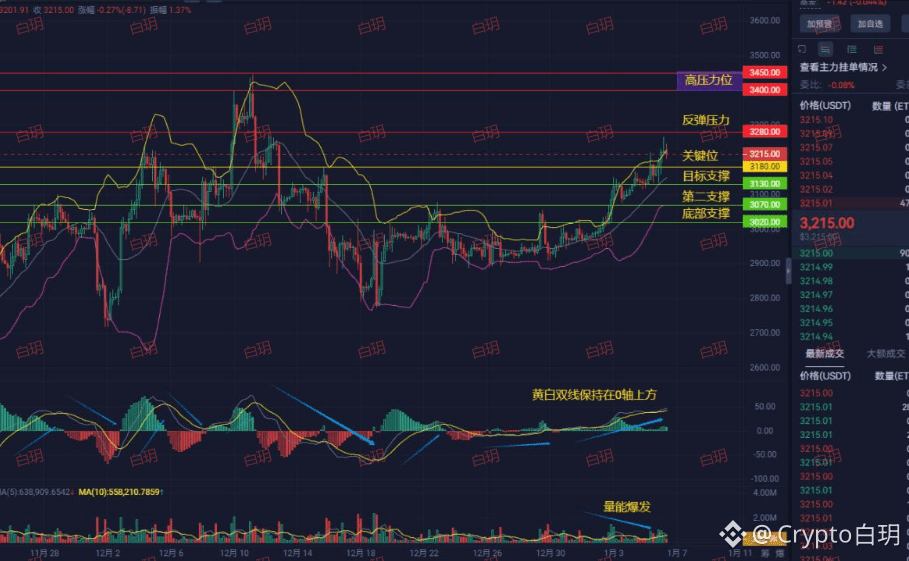价格现状: 卡在3215美金附近震荡,多空正在掰手腕。