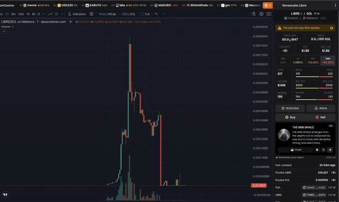 I truffatori stanno nuovamente sfruttando l'attenzione globale intorno a #venezuela . 🇻🇪Questa volta, hanno organizzato un classico pump-and-dump con un token chiamato #Libre , chiaramente ispirandosi alla vecchia #LIBRA storia delle shitcoin.
