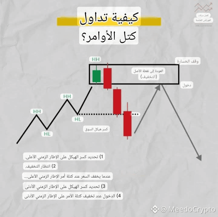 هذه المنطقة تمثل مكان دخول المؤسسات (البنوك وصناديق الاستثمار)، وغالبًا يعود السعر إليها لاحقًا لعمل mitigation أي “تصحيح” أو “اختبار” للمنطقة قبل استكمال الاتجاه.