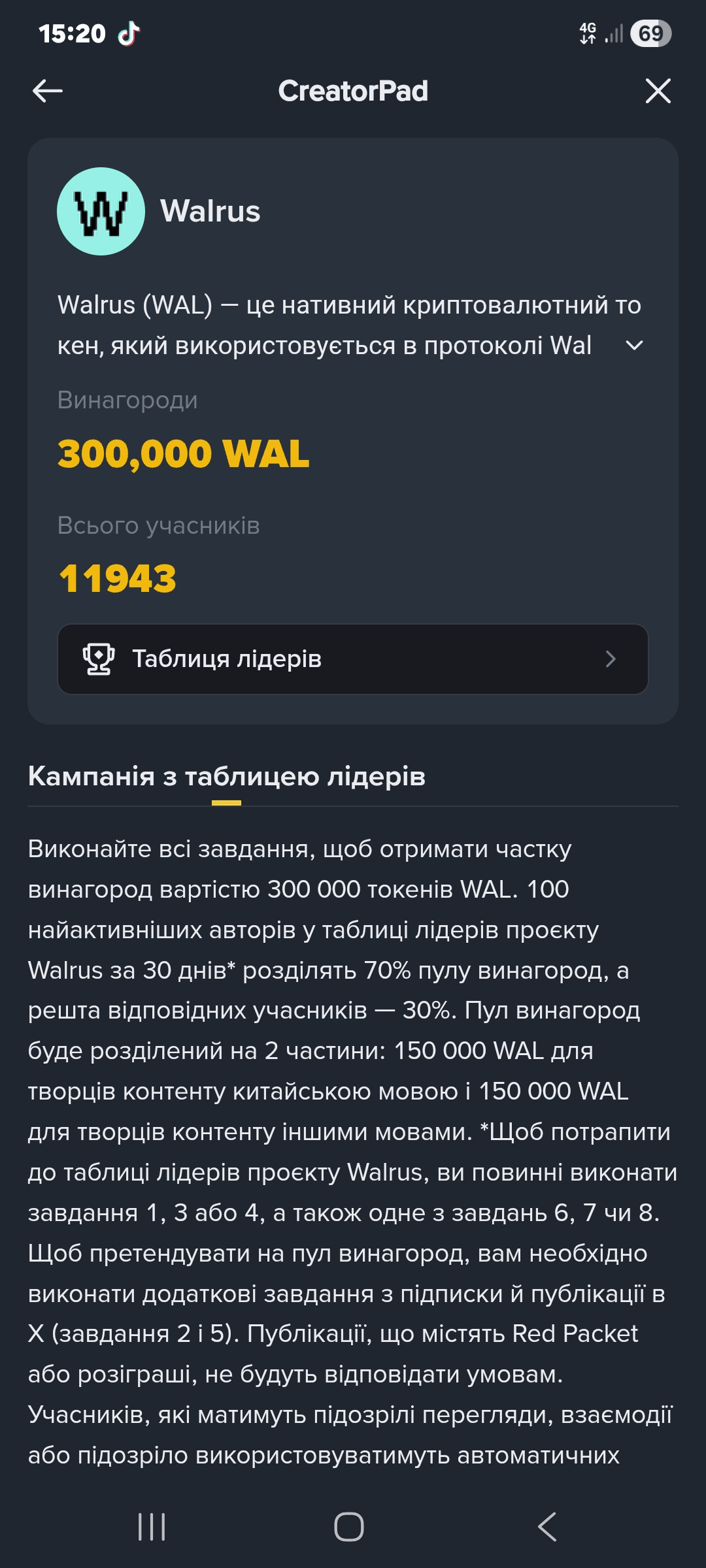 Amici, il mio percorso nel mondo della cripto continua, e oggi voglio soffermarmi più nel dettaglio sul progetto che al momento sta attirando molta attenzione su CreatorPad — si tratta di @walrusprotocol.