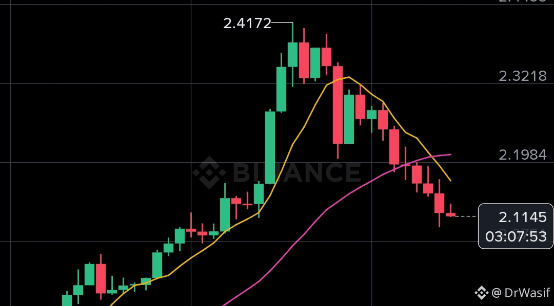 La struttura mostra massimi più bassi + rottura dal supporto di 2.20