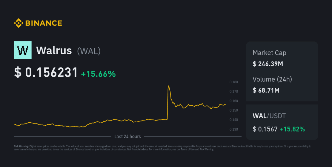 WAL sta negoziando intorno a ≈ $0.13–$0.14 USDT (molto basso rispetto ai suoi massimi passati) ed è stato volatile nelle ultime settimane.