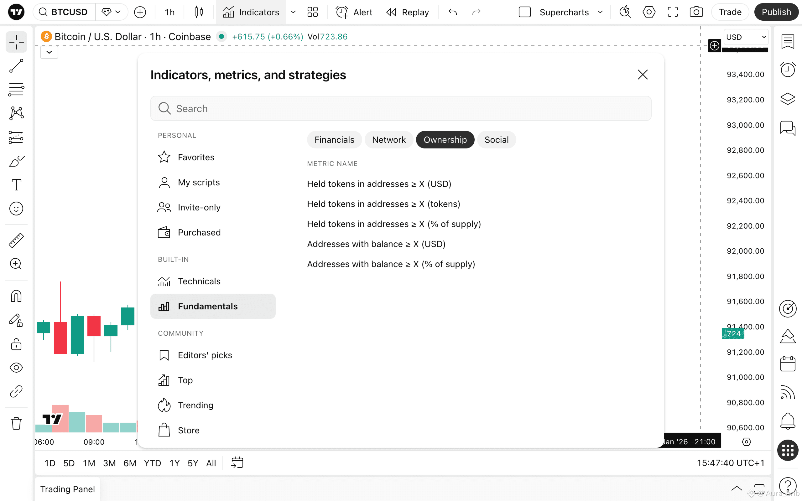 As this year starts to roll, we introduce a brand-new set of indicators that bring crypto fundamental metrics to your charts. These indicators consolidate over 30 metrics into four key analytical categories Financials, Network, Ownership, and Social.