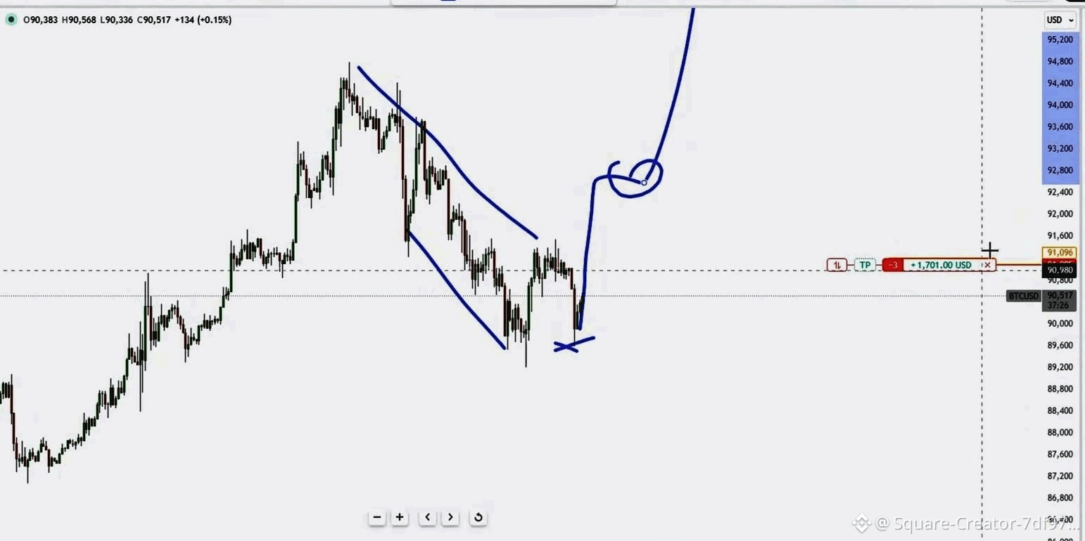 السعر يتداول في نطاق تثبيت بين ≈ $88,000 و$92,000، ما يشير إلى تراجع الزخم وصعوبة الاختراق في الاتجاهين حالياً. ??