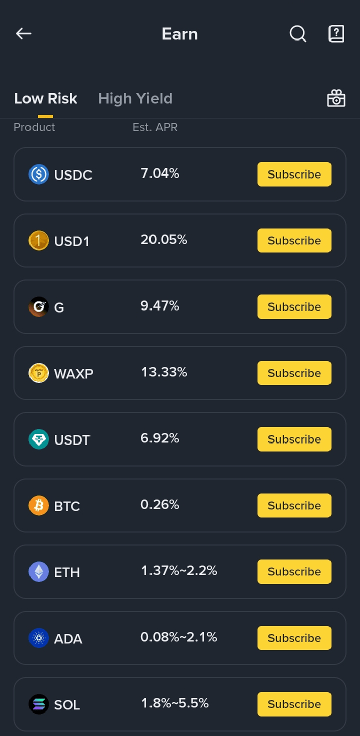 Simple Earn ti permette di guadagnare ricompense giornaliere depositando i tuoi asset digitali per periodi flessibili o bloccati. Puoi iscriverti o ritirare quasi in qualsiasi momento, offrendoti flessibilità e liquidità mentre i tuoi asset lavorano per te.