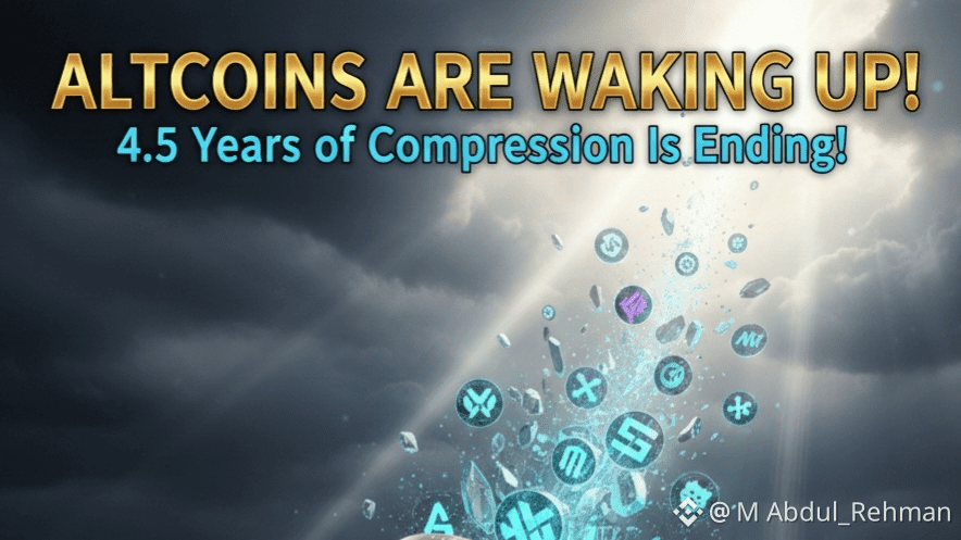 Per quasi cinque anni, il mercato delle altcoin è stato in uno stato di profonda compressione, un periodo contraddistinto da prezzi stagnanti e interesse degli investitori in calo. Mentre $BTC Bitcoin spesso rubava la scena con i suoi cicli di dimezzamento e l'adozione istituzionale, molte altcoin sono rimaste inattive, lasciando gli investitori a lungo termine a interrogarsi sul valore dei loro investimenti. Ma si sta verificando un cambiamento evidente, e sempre più analisti e metriche on-chain suggeriscono che questo lungo periodo di letargo sta per concludersi. Le altcoin si stanno risvegliando, e il prossimo rally potrebbe vedere il loro ritorno al loro antico splendore, e oltre.