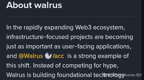 Nell'espandente ecosistema Web3, i progetti incentrati sull'infrastruttura stanno diventando importanti quanto le applicazioni orientate agli utenti, e @Walrus 🦭/acc è un forte esempio di questo cambiamento. Invece di competere per il clamore, Walrus sta costruendo una tecnologia fondamentale mirata a risolvere una delle maggiori sfide della blockchain: lo stoccaggio decentralizzato dei dati su larga scala. Man mano che più applicazioni si spostano on-chain, la capacità di memorizzare, verificare e accedere in modo sicuro a grandi set di dati diventa essenziale.