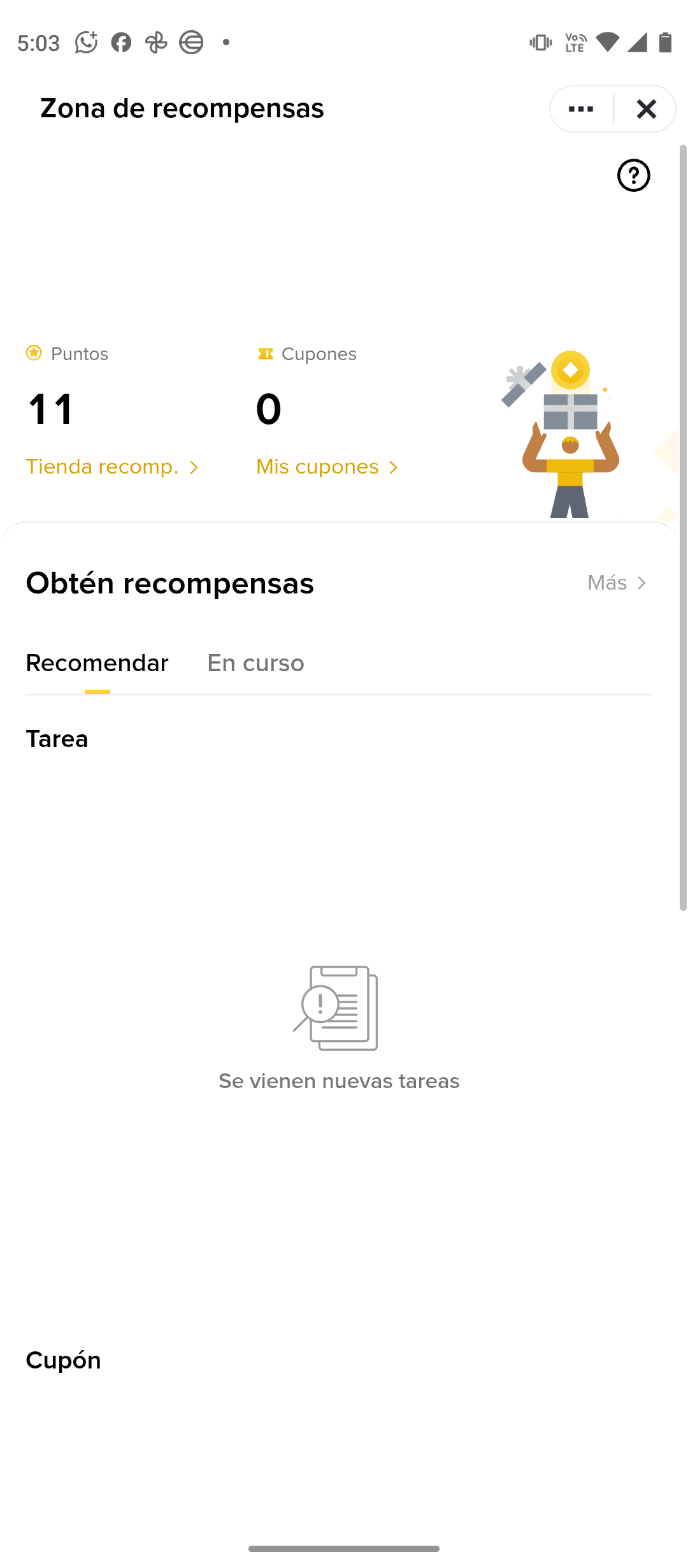 Più in basso appare il blocco Ottieni ricompense, con schede come Raccomanda e In corso. Ciò indica che Binance non ricompensa solo l'attività individuale, ma anche azioni come invitare altri utenti o partecipare a campagne attive. Quando non ci sono compiti visibili, il messaggio "Nuove attività in arrivo" rende chiaro che questo settore viene aggiornato dinamicamente e conviene verificarlo spesso per non perdere opportunità.