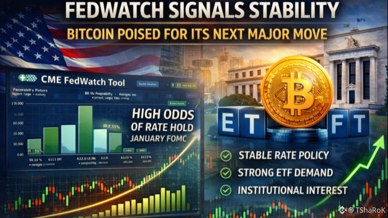 Il panorama macroeconomico sta cambiando nuovamente, e tutti gli occhi sono puntati sulla Federal Reserve mentre si avvicina il meeting FOMC di gennaio. Lo strumento CME FedWatch — un indicatore chiave utilizzato dagli operatori per valutare le aspettative sui tassi di interesse — indica ora in modo deciso una stabilità della politica. Per il mercato delle criptovalute, e in particolare $BTC in, questo segnale ha implicazioni significative.