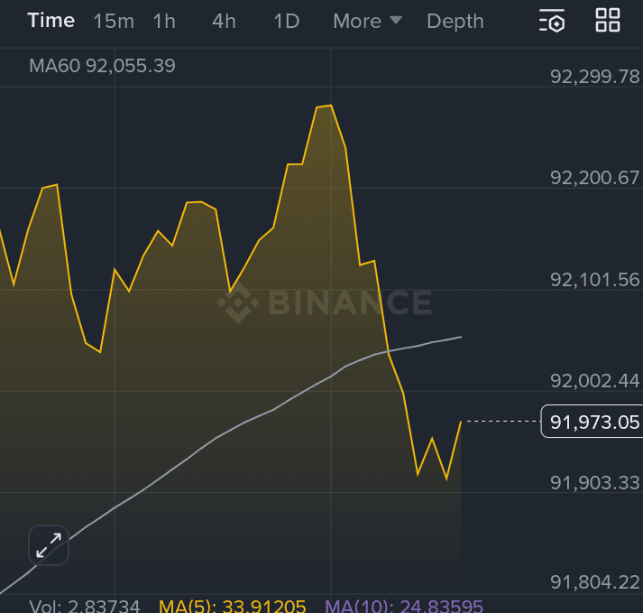 $BTC sta attualmente negoziando intorno a $91,000–$92,000, vicino a una zona di supporto chiave.📈