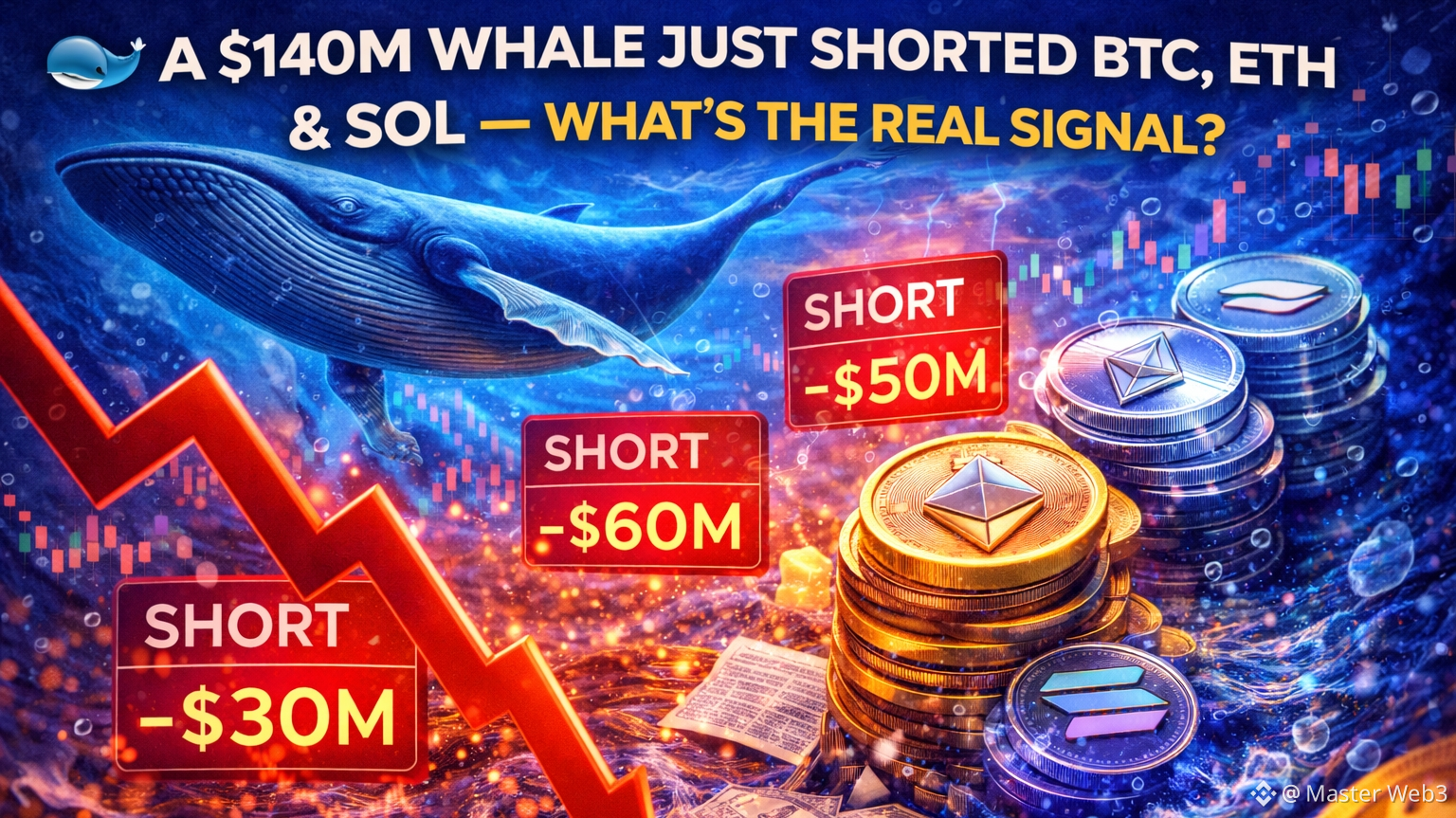 Un singolo balena ha aperto posizioni corte con leva 20× su Bitcoin, Ethereum e Solana, con esposizione totale vicina ai 140 milioni di dollari. Non si tratta di un'operazione casuale — è un messaggio.
