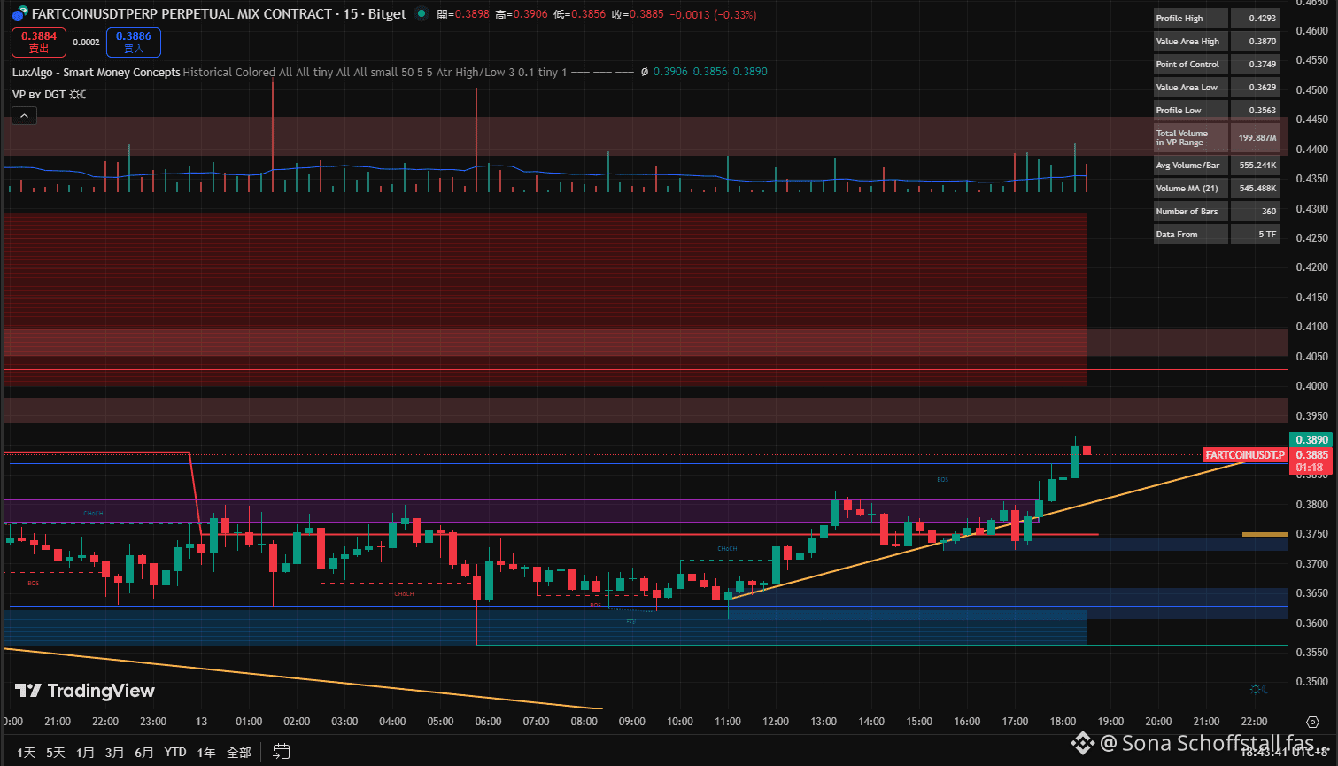 早上的分析:可能突破壓力區,上漲趨勢疑似長時間下跌趨勢結束後的橫盤0.36-0.4,可能是下跌前的反彈,或開始上漲
