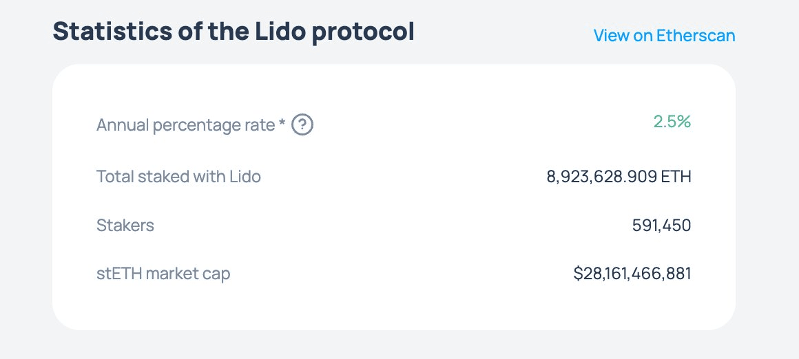 In base ai rendimenti indicati attualmente dalla pagina ufficiale di Lido, se fosse possibile mantenere un rendimento annuo stabile del 2,5%, sarebbe davvero un'ottima scelta per la maggior parte delle persone che fanno investimenti regolari in ETH.