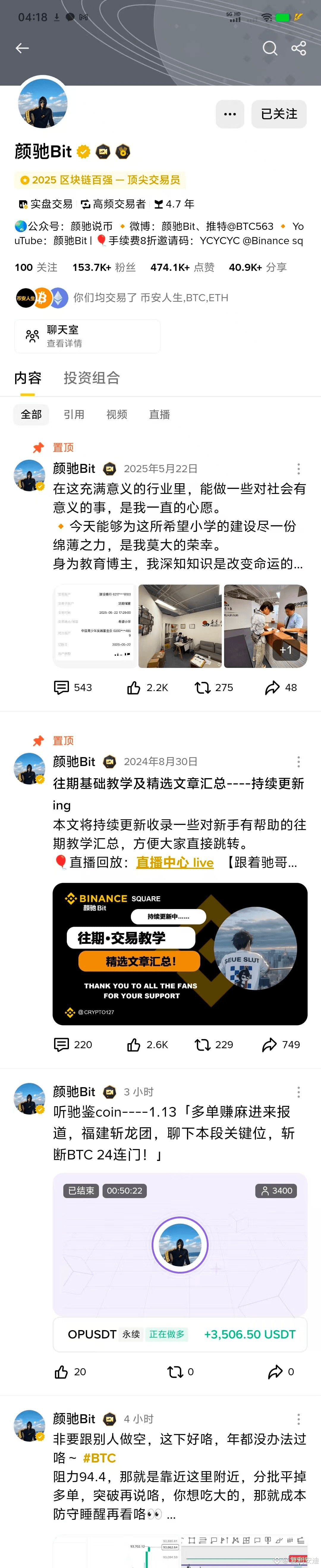 很多人好奇,@颜驰Bit仅凭初中文化,为何能积累百万粉丝?他的答案是“用真心换真心”。从联合粉丝捐赠希望小学践行社会责任,到持续更新新手交易教学汇总、主动与@Nuts坚果、@Crypto交易员朱一旦等优秀博主互动交流,他始终把社区放在首位。这种“不止于创作,更重于连接”的理念,让他的内容更具情感穿透力,也收获了粉丝的长期信任——这正是币安广场评选逻辑的核心:互动数据与转化价值的本质,都是用户对创作者的认可。