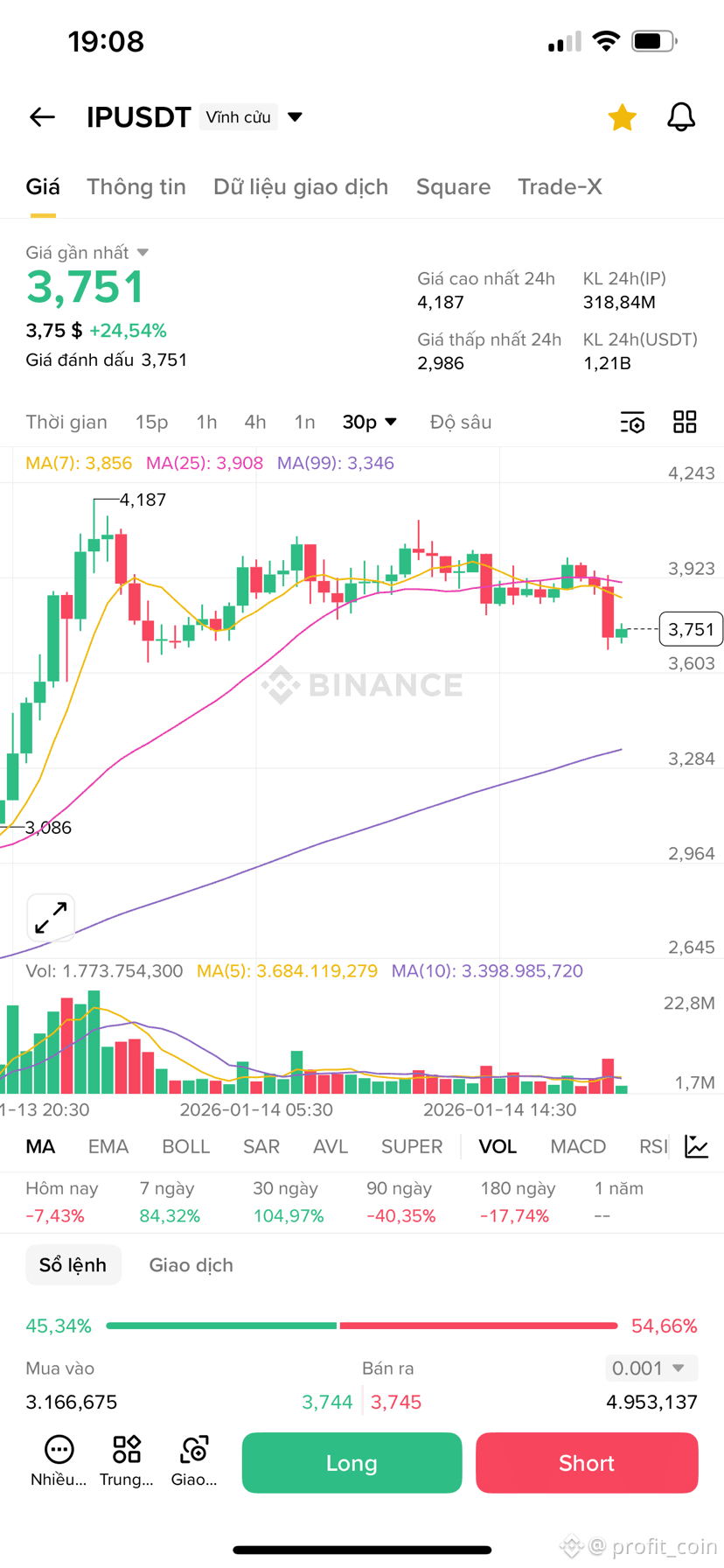 IPUSDT 在 4 附近出现明显转弱信号,上涨动能衰减,价格结构 有转向下跌的迹象。