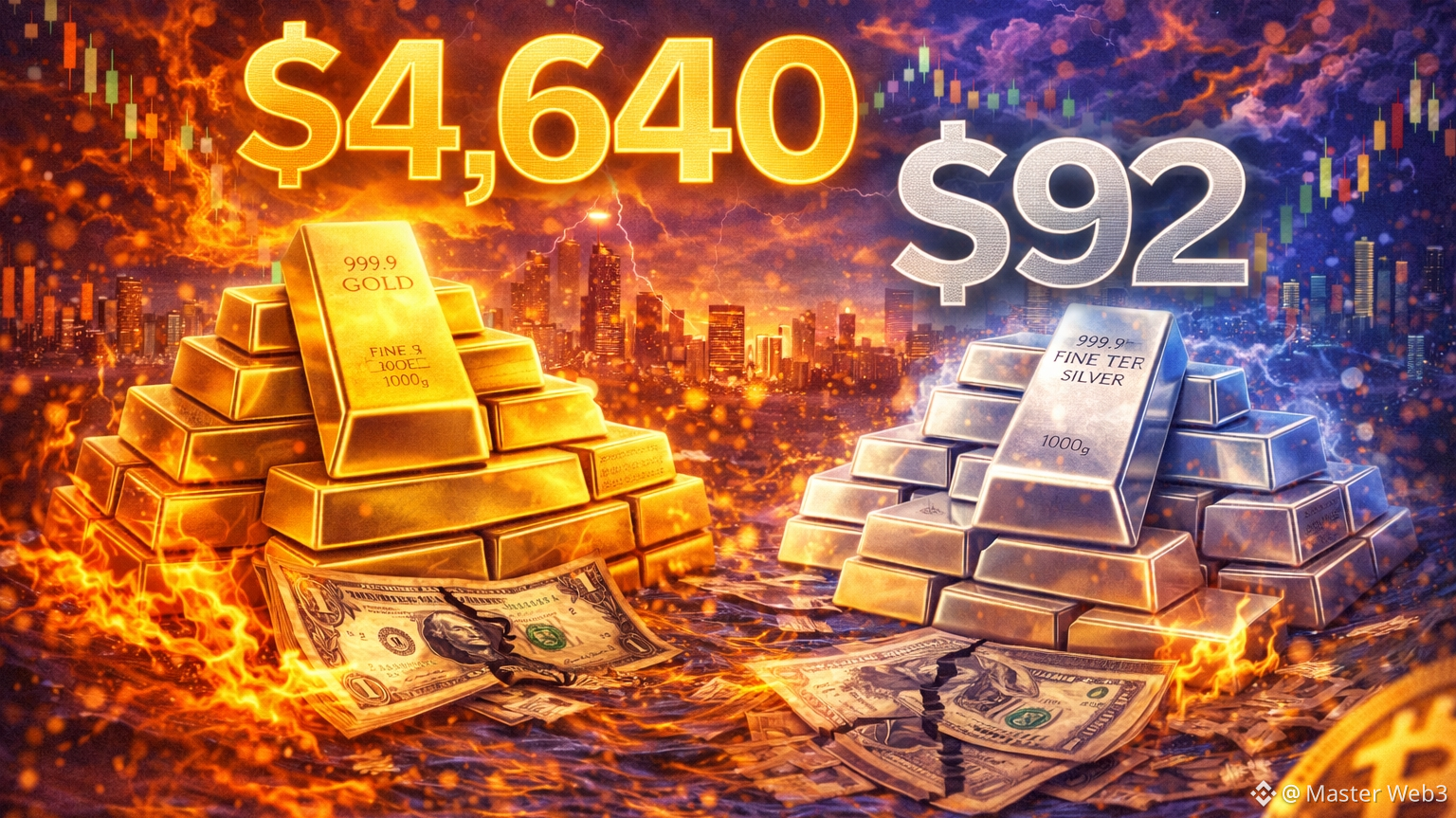 L'oro ha appena superato i 4.640 dollari l'oncia, mentre l'argento sta negoziando vicino ai 92 dollari, in rialzo in modo netto in un periodo molto breve. Movimenti del genere non accadono senza una ragione — e la ragione non è l'ottimismo.
