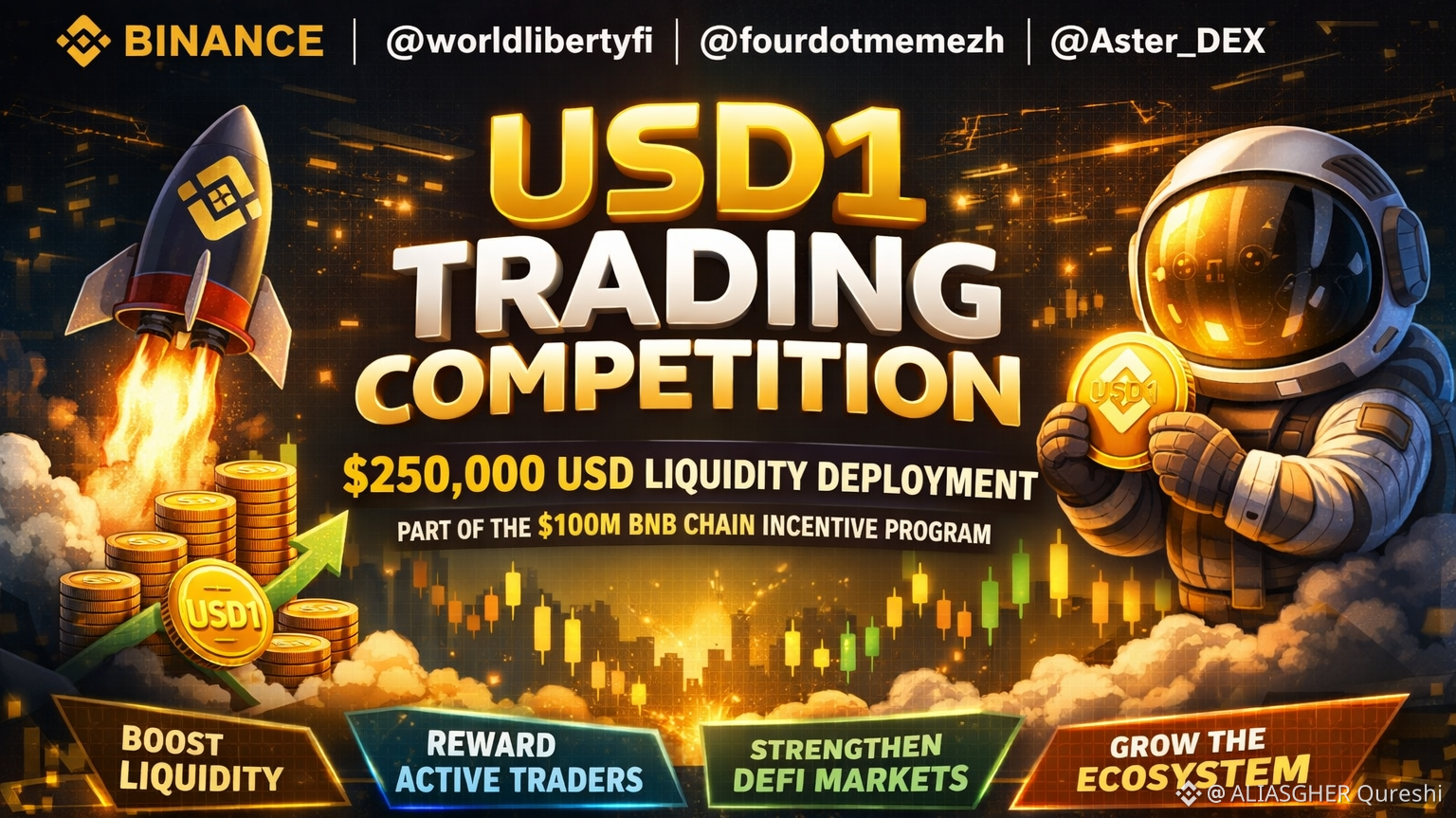 Binance, in collaborazione con @worldlibertyfi, @fourdotmemezh e @Aster_DEX, è orgogliosa di presentare la competizione di trading in USD1 - un potente nuovo impulso per la crescita dell'ecosistema.