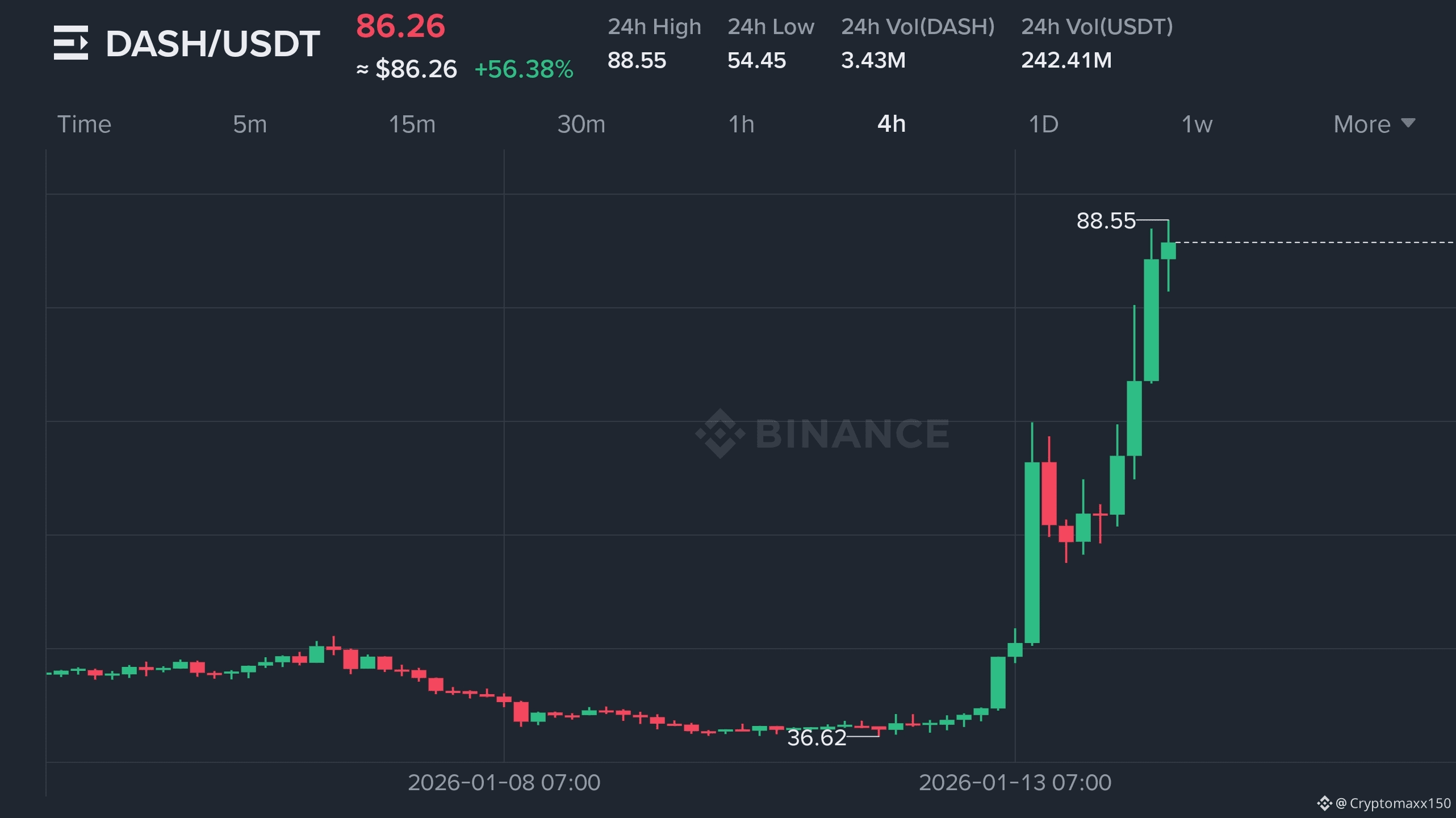 La criptovaluta Dash (DASH) ha registrato negli ultimi ore un forte movimento di prezzo che l'ha riportata con forza nell'attenzione, con un aumento superiore al 40% in 24 ore, spinto da un incrocio di fattori fondamentali, tecnici e comportamentali sul mercato.