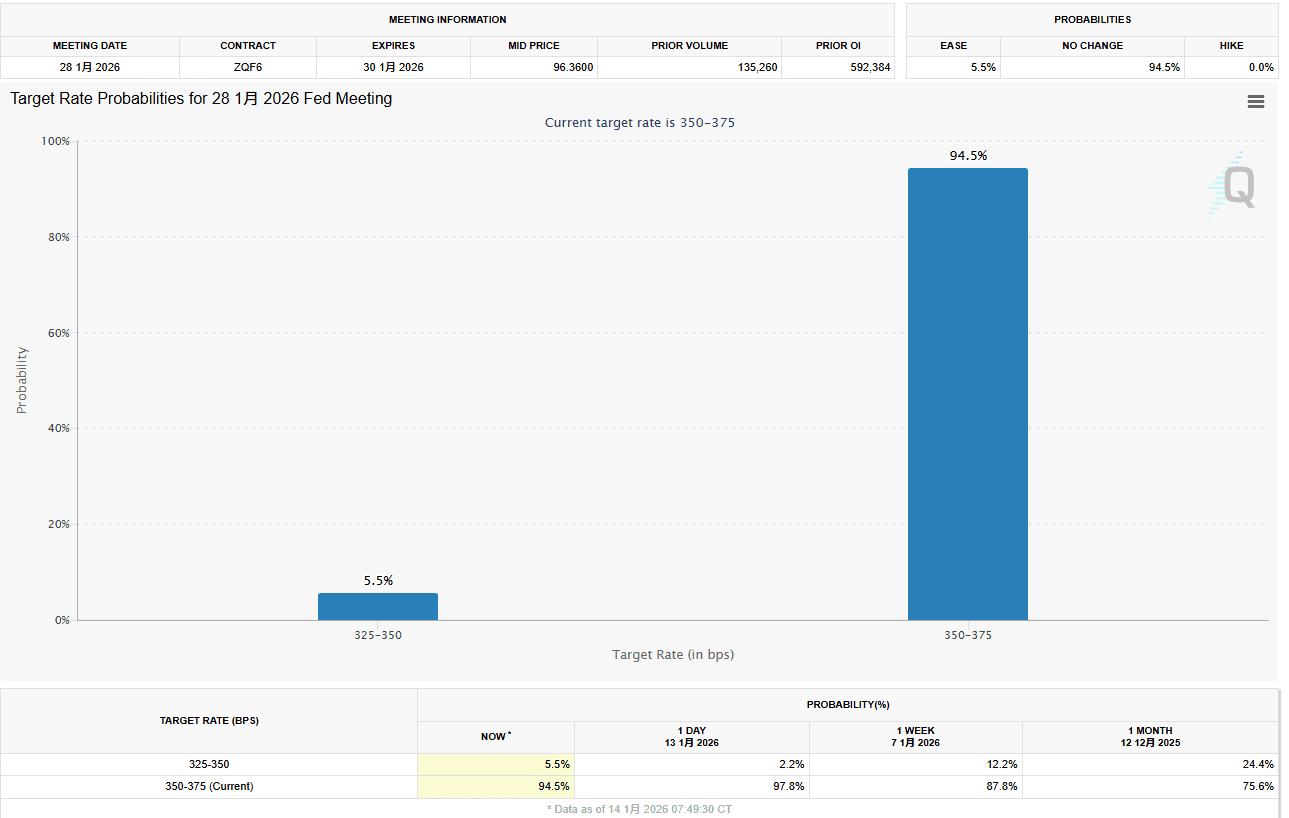 ● Dopo tre riduzioni dei tassi di interesse alla fine del 2025, gli investitori attualmente si aspettano che la Federal Reserve non riduca nuovamente i tassi prima di giugno 2026. Questa aspettativa è in linea con il tono cauto degli ufficiali della Federal Reserve, che temono che l'inflazione sia ancora superiore al target del 2% e che la politica tariffaria possa portare a pressioni sui prezzi.