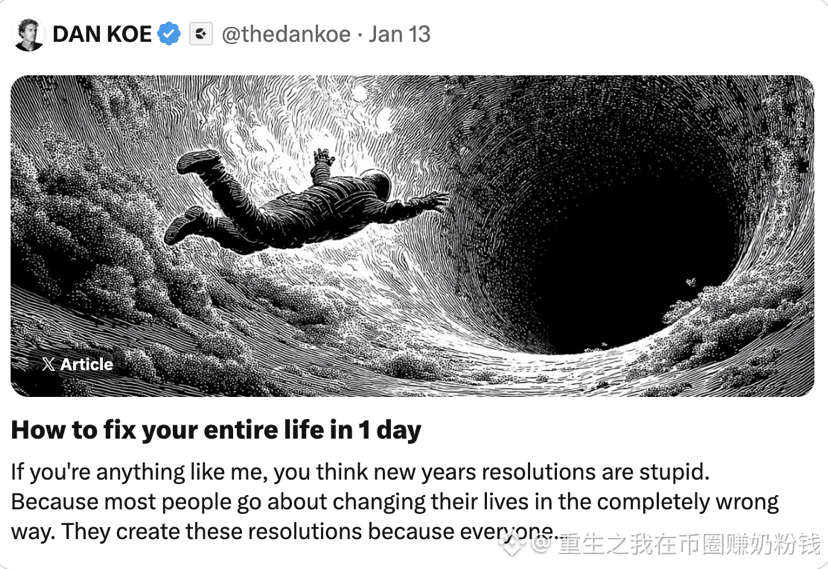 Dan Koe的此文质量高受到来超过千万的阅读量,文章很长,英文,如果你没耐心读完,我整理了一份可以让你30秒读完的读书笔记!