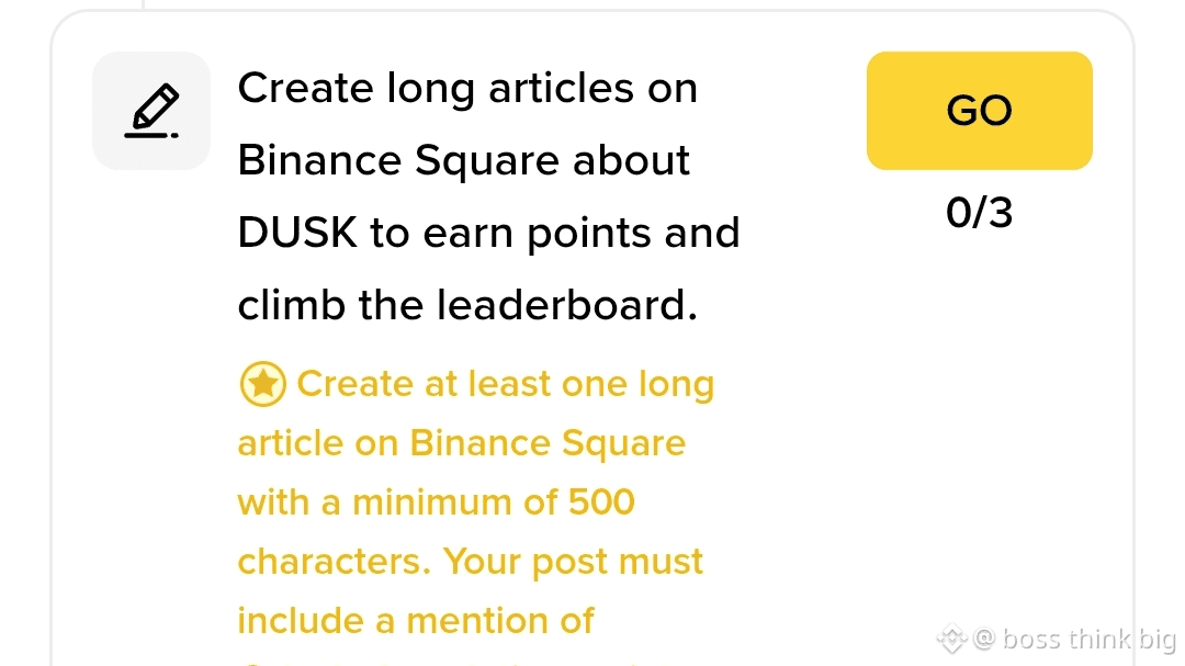 Crea almeno un articolo lungo su Binance Square con un minimo di 500 caratteri. Il tuo post deve includere un riferimento a @Dusk , cointag $DUSK e contenere l'hashtag #dusk per essere idoneo. Il contenuto deve essere pertinente a Dusk e originale. Puoi includere questi punti di discussione in