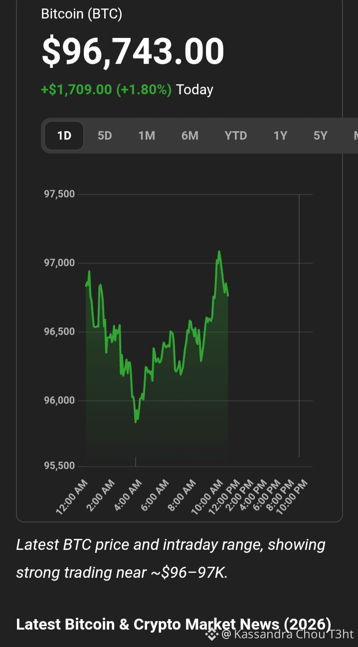 *Latest BTC price and intraday range, showing strong trading near ~$96–97K.