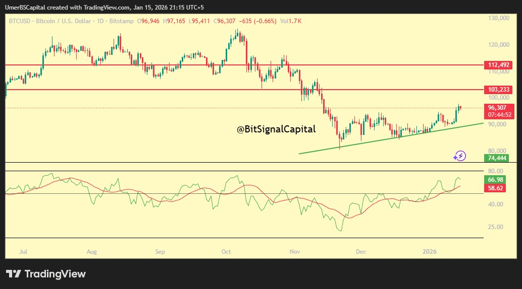 Il BTC sta passando da una fase correttiva a un potenziale intervallo di riaccumulo. Tuttavia, una continuazione rialzista confermata non è ancora stata stabilita.