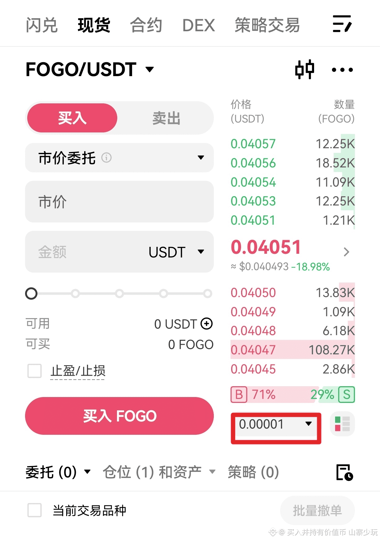 以某平台的 FOGO 交易对为例:
