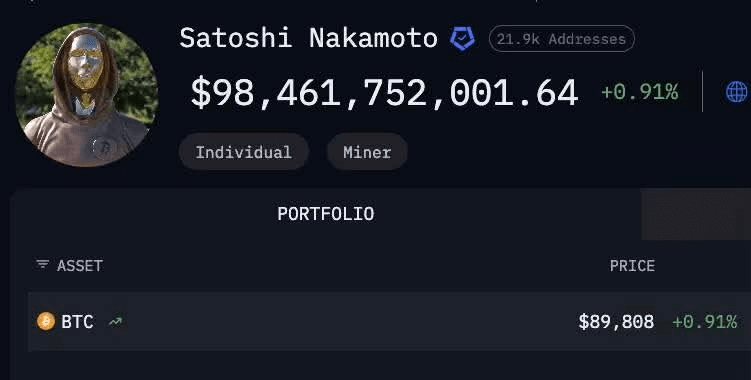 🚨NOTIZIA: Le partecipazioni in Bitcoin di Satoshi Nakamoto sono ora valutate oltre $98 MILIARDI