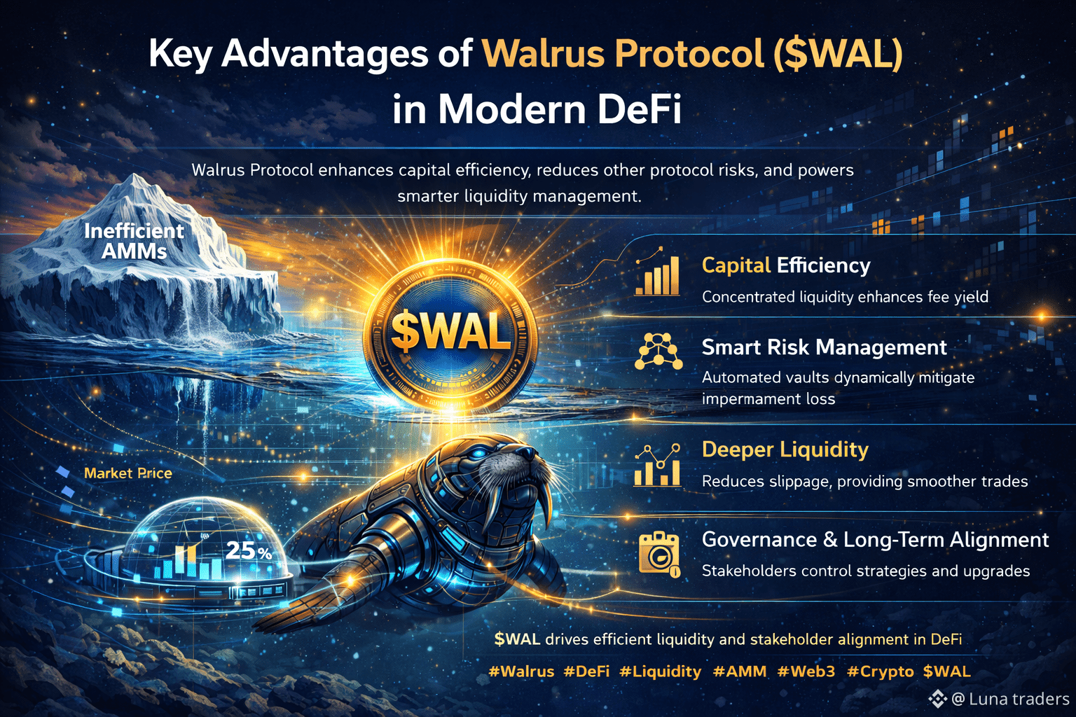 In a crowded DeFi market, only a few projects truly solve real structural problems. @Walrus 🦭/acc stands out by addressing one of DeFi’s biggest weaknesses: inefficient and poorly managed liquidity. The advantages of $WAL are not just theoretical — they are practical benefits designed for real users, liquidity providers, and the broader ecosystem.