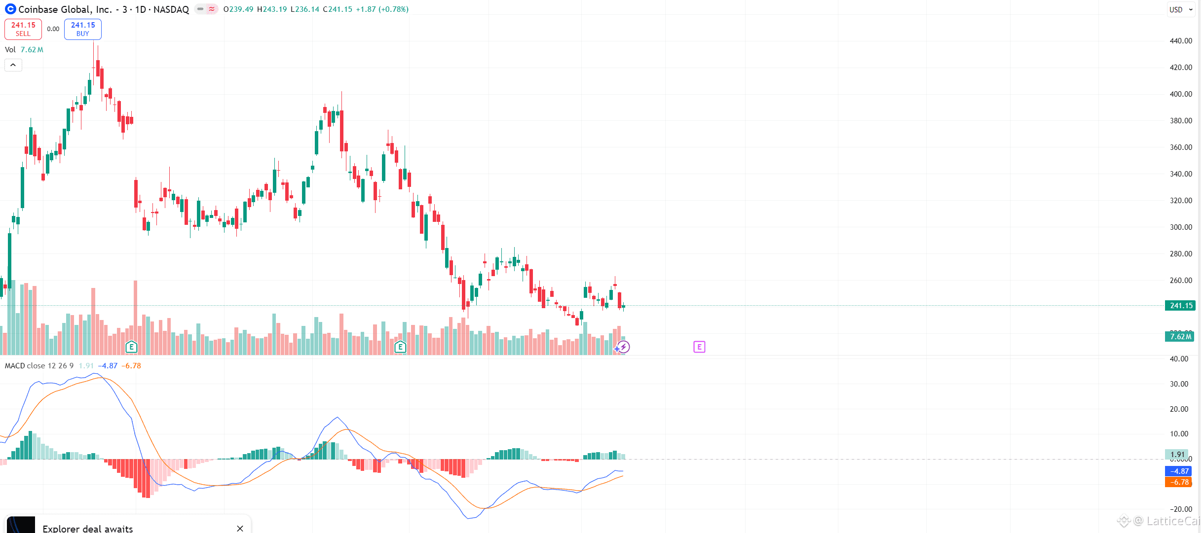 上周五1月16日收盘价241.15美元,日内+0.87%。