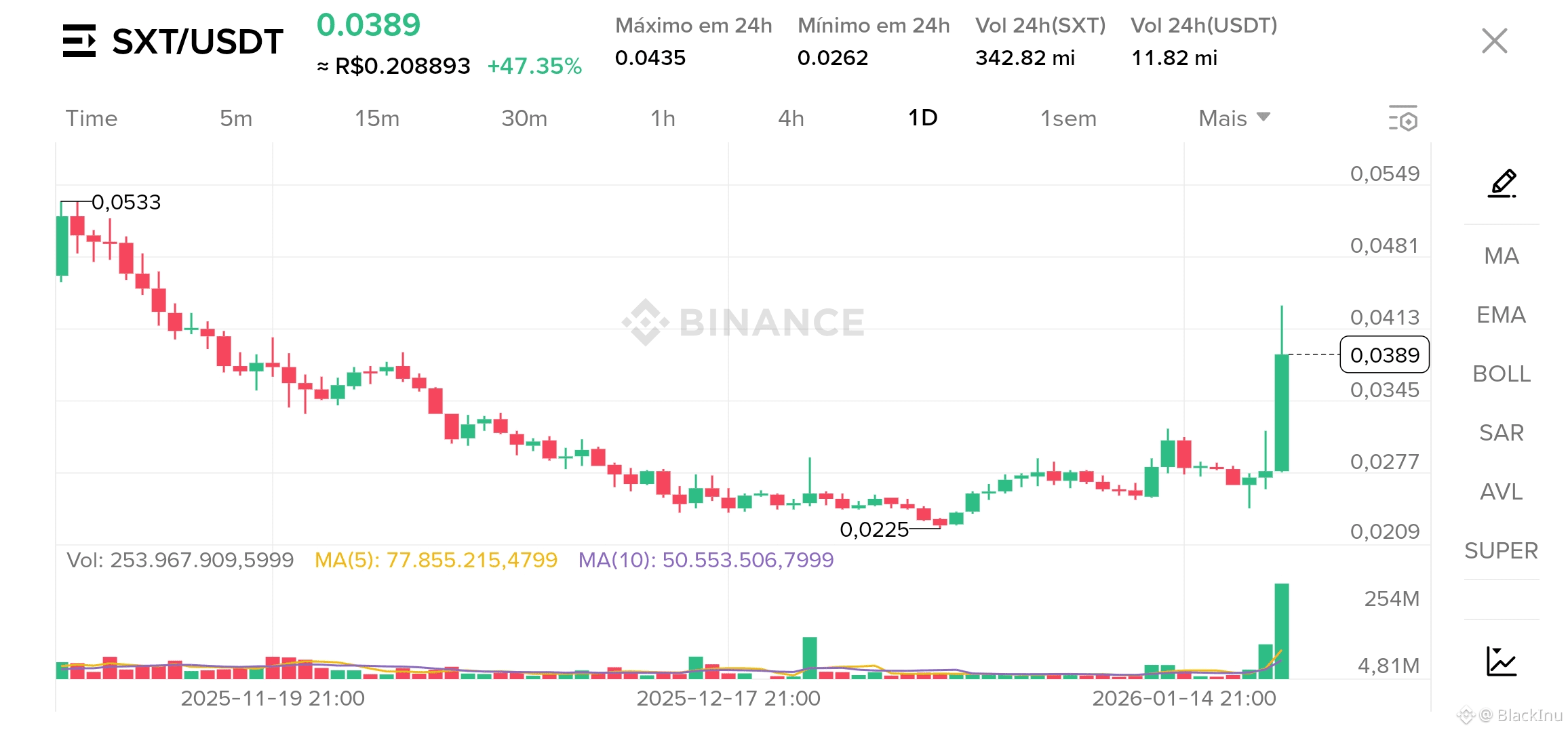 💰 Volume 24h: 342,82 mi SXT | 11,82 mi USDT