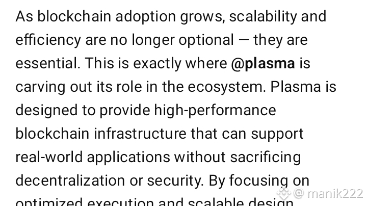 Con l'aumento dell'adozione della blockchain, scalabilità ed efficienza non sono più opzionali: sono essenziali. È esattamente qui che @Plasma sta ritagliando il suo ruolo nell'ecosistema. Plasma è progettato per fornire un'infrastruttura blockchain ad alte prestazioni che può supportare applicazioni del mondo reale senza compromettere la decentralizzazione o la sicurezza. Concentrandosi su un'esecuzione ottimizzata e un design scalabile, Plasma mira a risolvere i punti critici comuni come la congestione della rete, i lunghi tempi di conferma e l'aumento dei costi delle transazioni.