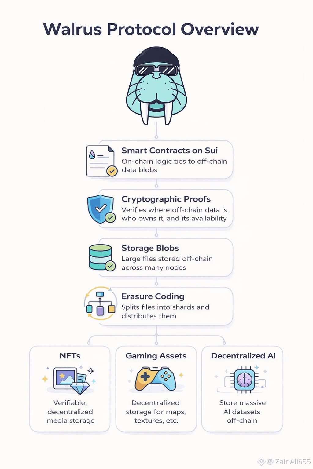 Let me explain Walrus the way I’d explain it to a smart friend who’s been around crypto long enough to be skeptical because honestly, that skepticism is earned. Web3 has never really had a clean answer for data. Tokens? Easy. Transactions? Fine. But real files videos, AI datasets, game assets, front ends those are huge, and blockchains were never meant to store them directly. For years, we kind of pretended otherwise, then quietly leaned on centralized servers when things broke. That’s why Walrus Protocol actually feels relevant right now, especially in 2026. Walrus isn’t trying to turn a blockchain into a hard drive. It’s doing something more practical. It lets large files live off-chain, but still be verifiable and controlled by on-chain logic. The protocol focuses on what it calls “blobs” big chunks of unstructured data and ties them back to smart contracts on Sui using cryptographic proofs. So contracts don’t store the data itself. They just know where it is, who owns it, and whether it’s still available. That separation matters more than people realize. Under the hood, @Walrus 🦭/acc uses erasure coding (often referred to as the “Red Stuff” design). Instead of copying entire files across every storage node, it breaks them into shards and distributes them across many operators. You don’t need every shard to recover the data just enough of them. That’s what keeps things resilient and affordable at the same time. And cost is the whole game here.