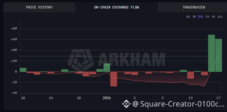 تعكس هذه البيانات كمية داسك التي تتدفق إلى وخارج البورصات. في 16-17 يناير، ارتفعت التدفقات الداخلة إلى المنصات لأكثر من 6 ملايين داسك يوميًا. شكّل ذلك أعلى مستوى خلال آخر 30 يومًا. تشير البيانات إلى أن المستثمرين الأوائل قد يقومون بجني الأرباح بعد الصعود الأخير.