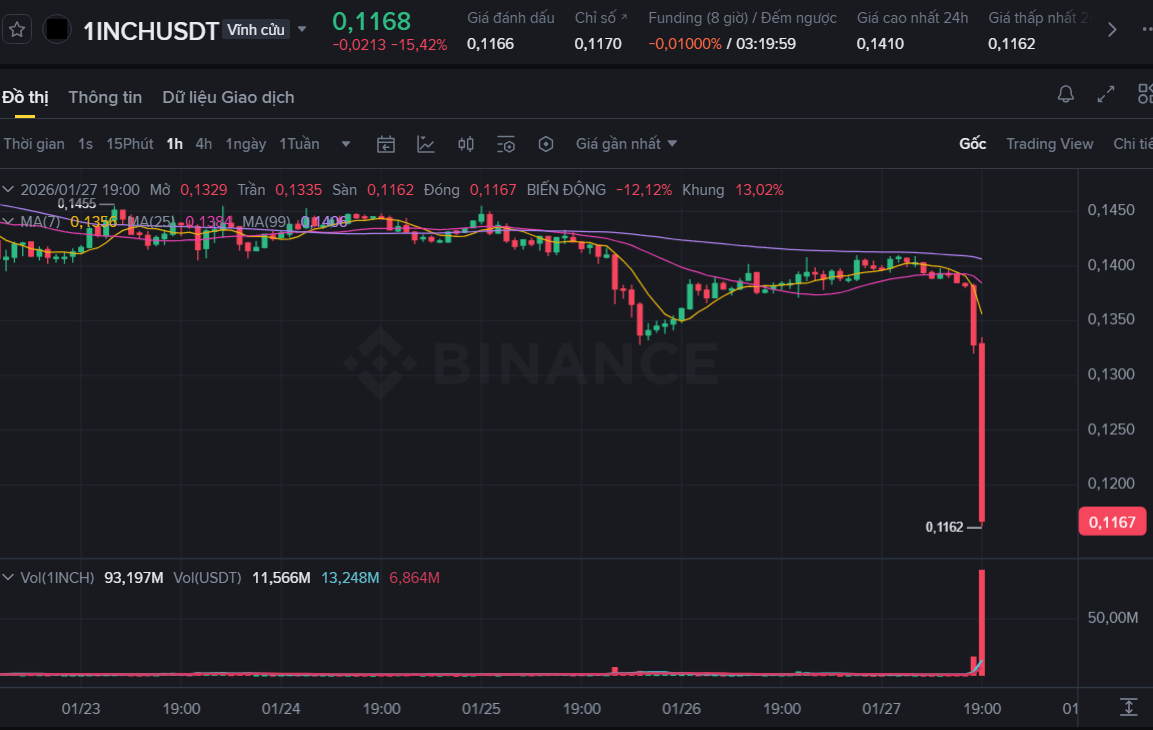 Questo ordine di vendita massiccia ha spazzato via la liquidità del Buy wall, facendo scendere il prezzo $1INCH