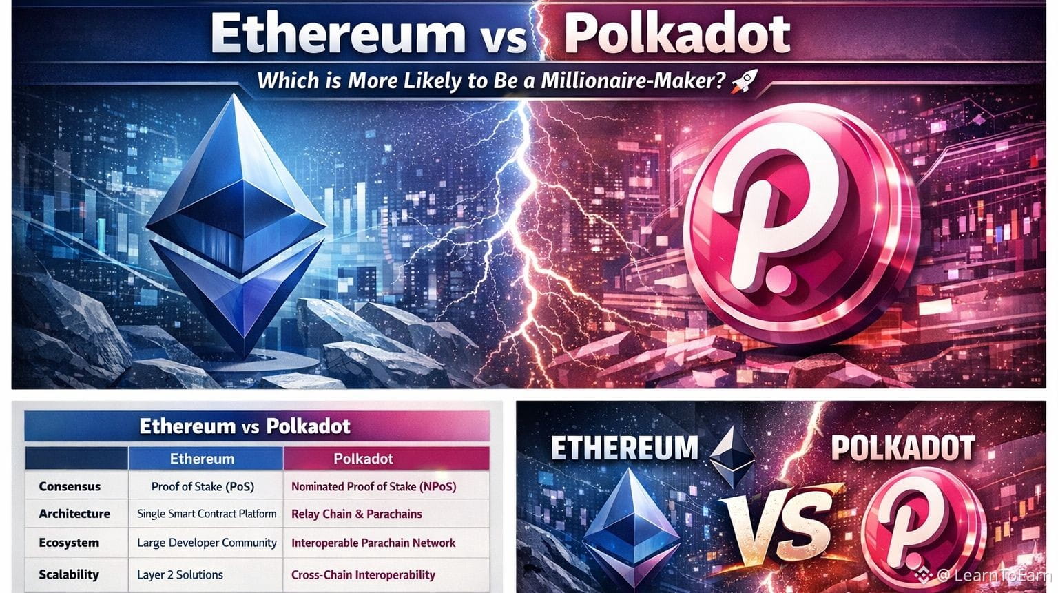 Quando si tratta di potenziale di creazione di milioni, rischio e probabilità contano. Ethereum è improbabile che offra il tipo di rendimenti esplosivi che una volta forniva, semplicemente perché è già così grande. Tuttavia, la sua posizione dominante significa che una crescita costante a lungo termine rimane realistica se l'adozione delle criptovalute continua ad espandersi. Polkadot, d'altra parte, comporta un rischio maggiore. Se il suo modello di parachain guadagna improvvisamente una forte trazione, l'upside potrebbe essere drammatico. Ma quel risultato è lontano dall'essere garantito.